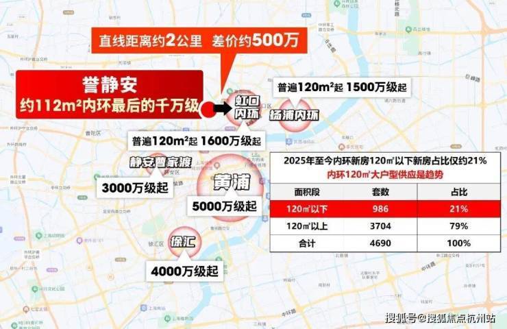 而虹口、杨浦内环,到传统市中心普遍超过3-5站,通勤效率不如这里,总价门槛却比誉静安高出约500万。