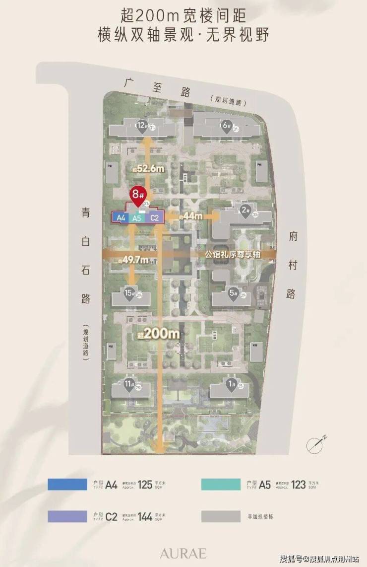 超275米中央绿轴+约50米超宽楼距:这种奢侈的尺度,让整个社区成为公园的延伸。