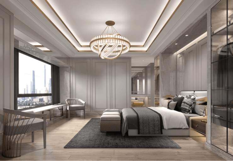 值得一提的是,边套主卧270度转角采光,相比普通飘窗多一面观景享受、多一面采光,就像广角镜头,无限延展窗外的诗意,一览河景及低密度别墅区。