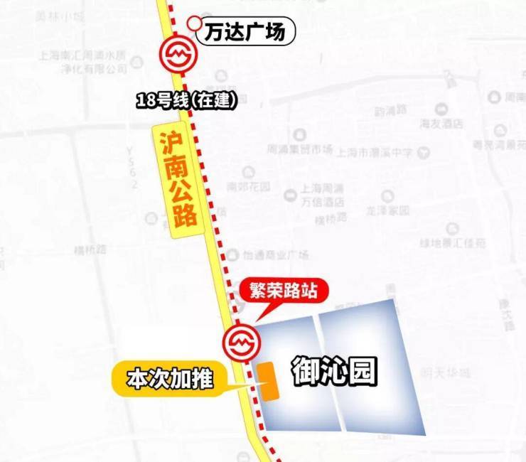 交通:轨道交通:16号线周浦东距离本项目3公里;18号线繁荣路站紧邻本项目,直线距离约200米,而七期仅约50米。