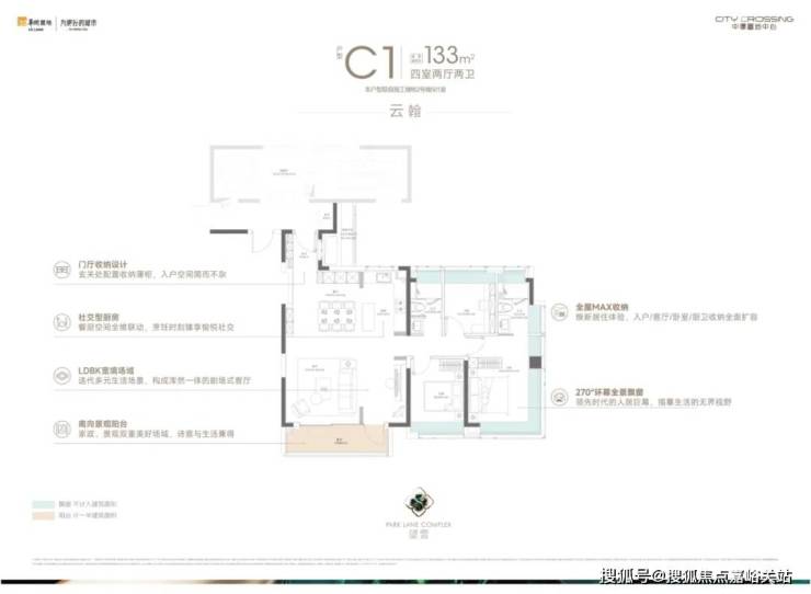 电梯厅全明通透+类一梯一户设计,满足大户型业主对于入户私密性的生活需求。此外还增加两处优秀设计:多飘窗和惊艳的MAX收纳尺度。