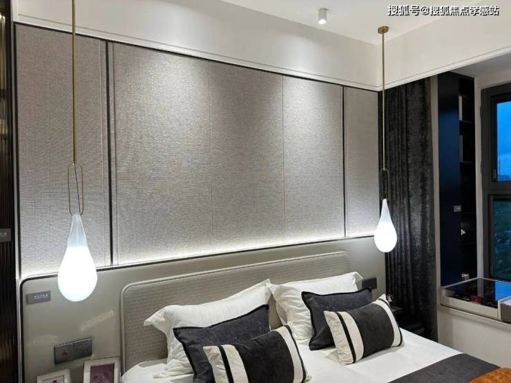 「浦发·上品」售楼处电话✆:400-8855-420✆主卧床背景墙进行了软包处理,省去了业主未来二次装修的时间、精力跟成本,更好的给业主一个舒适且高颜值的家。