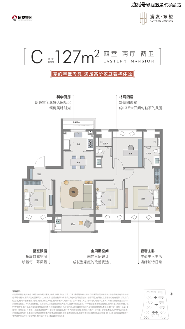 3、「浦发·上品」售楼处电话✆:400-8855-420✆建面约127㎡4房2卫