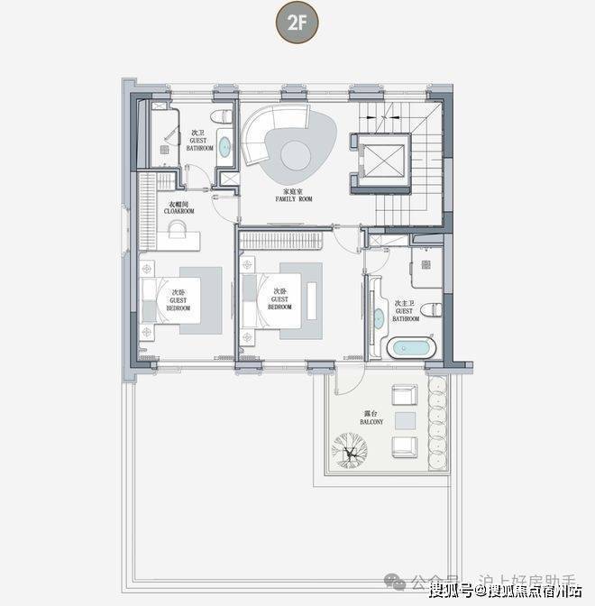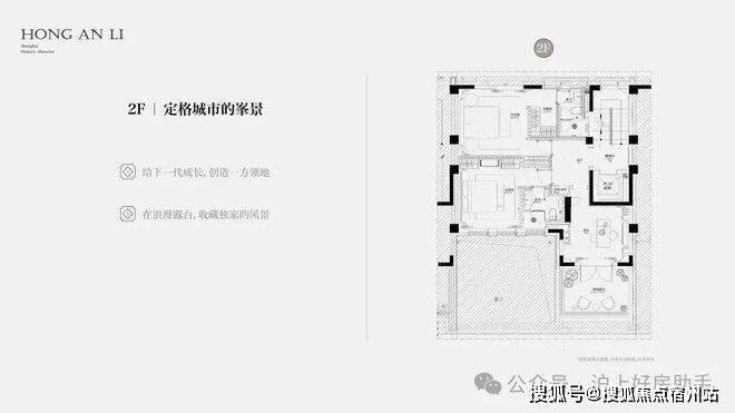 客厅互通,彰显家族生活的轩阔厅堂,2F家庭层,儿女的幸福与陪伴皆在左右,3F总裁套房式Penthouse,用具象的尺度描写人生成就的高度。