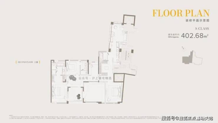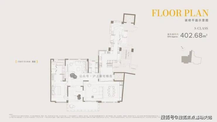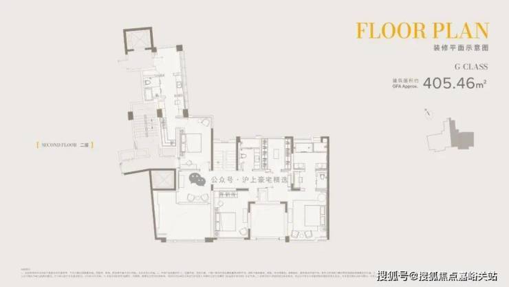 作为古北板块近五年唯一的纯复式大宅,项目以极致设计打破平层局限,打造 “垂直化的墅质生活”,主力建面约 405㎡户型,采用上下双层格局,一层规划客餐厨一体化社交空间,二层打造私密居住层,实现 “动静分离、公私分区” 的完美动线。