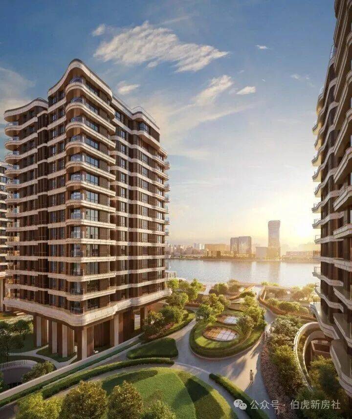 除绝美江景及国际滨水生活方式外,项目汇聚了包括MakeArchitects、Belt Collins、PLPL、CCD 等多位世界级设计师联袂打造,从建筑到细节,处处彰显高阶审美。项目立面提取江涛弧形元素,以纹理优美的浅色花岗岩集合金属包边,如同呼应江水的“飘带”,270°蝶形阳台,水波般的阳台曲线与江水相映成趣。