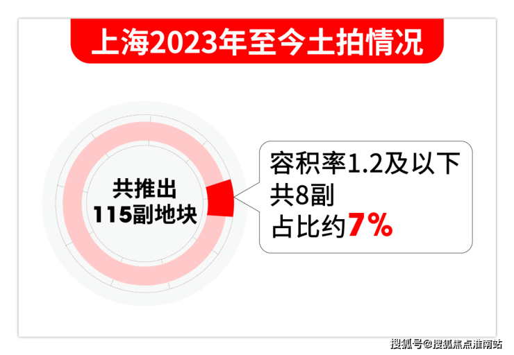 据小胖君统计,上海2023年至今,上海土地市场合计推出115副宅地,仅有8副容积率1.2及以下地块,占比约7%。