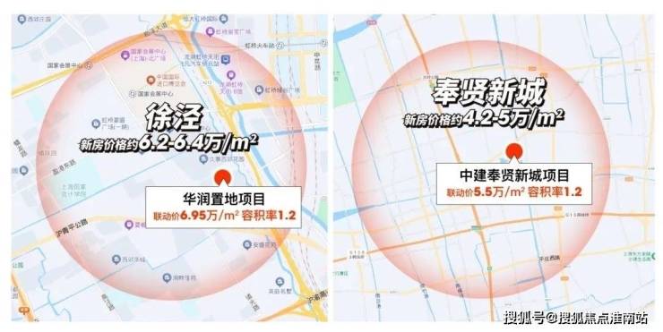 比如青浦徐泾容积率1.2的宅地和奉贤新城容积率1.2的宅地,比起板块其他新房,联动价至少高5000元/㎡!