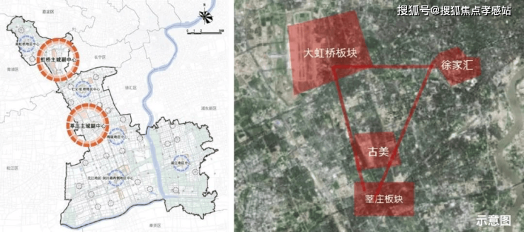 横跨中环线,部分地块位于中环内,紧邻西郊、古北、漕河泾、徐家汇、虹桥。