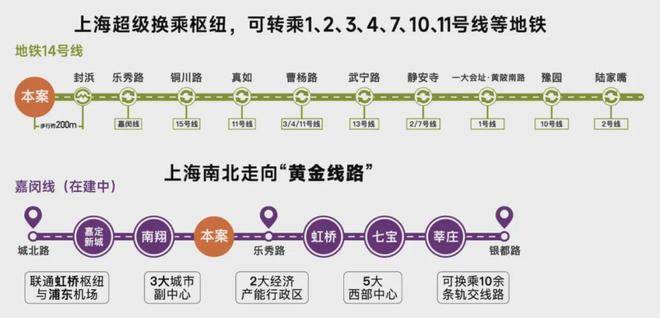 还有浦西南北动脉、宝藏轨交嘉闵线(在建中),预计2027年通车, 3站虹桥枢纽(轨交嘉闵线在建中),是虹桥商务精英的通勤宝藏线,以及南北交通动脉嘉闵高架,可极速通达虹桥、七宝、南翔等超级商圈。