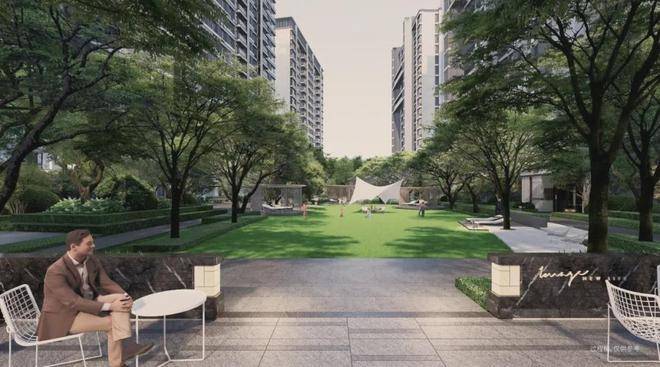 与自然亲密无间的互动场景,为家庭自在生长多一份洞见, 约160米的中央花园轴,将社区空间更多让渡于景观。