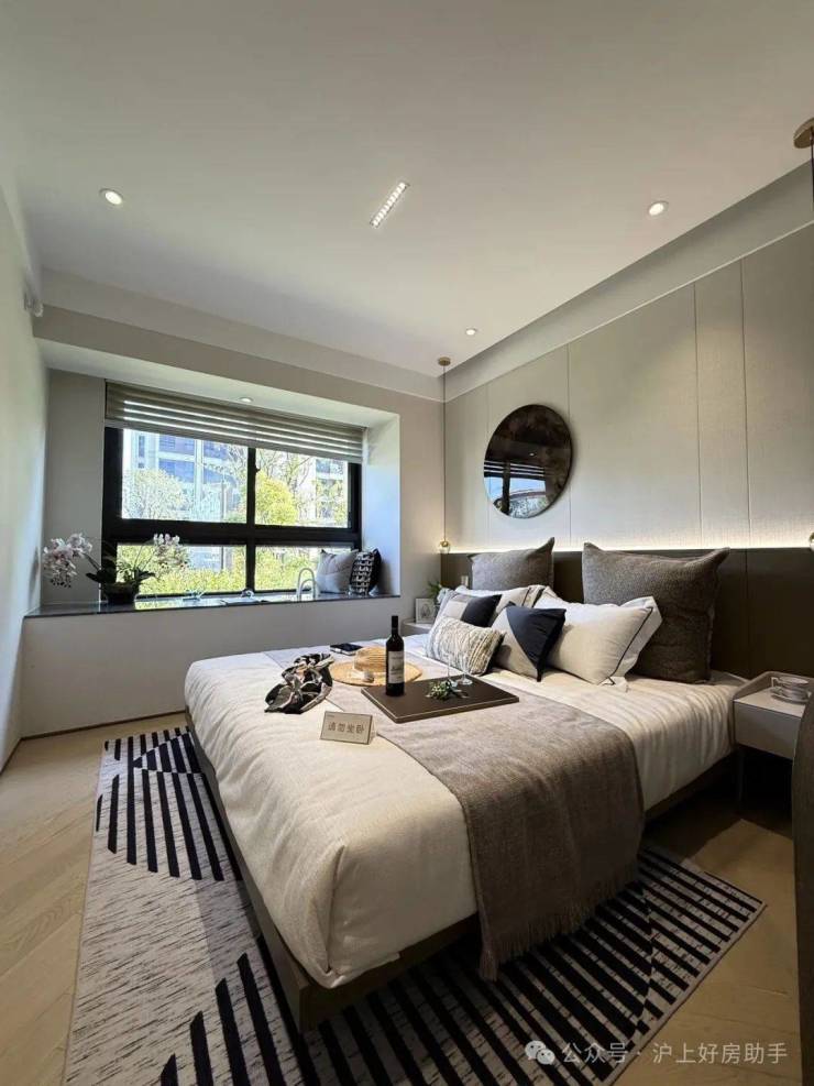 双套房设计,主卧带卫生间+衣帽间,次卧带衣帽间+飘窗,让两代家庭都能拥有自己的私密空间。