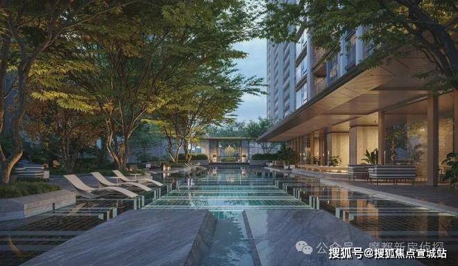 同时,以超奢戏水池与尊享休闲会所为核心,联动架空层,串联休憩廊架与横向端景,打造核心奢享场景。另外,整个项目拥有包括泛会所(戏水池、健身场所)、场景化网红架空层泛会所等全维社交场景。