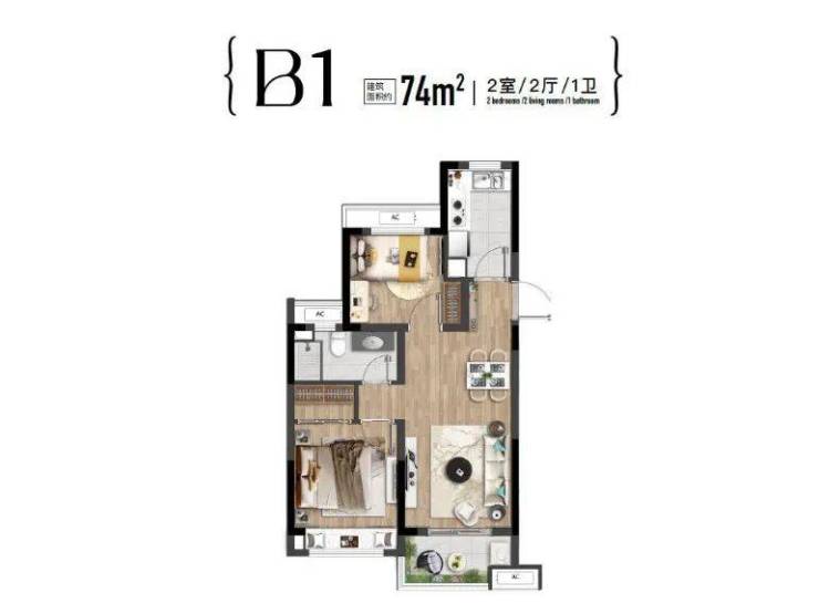 【LDK客餐厨一体】:南北通透 现代空间格局