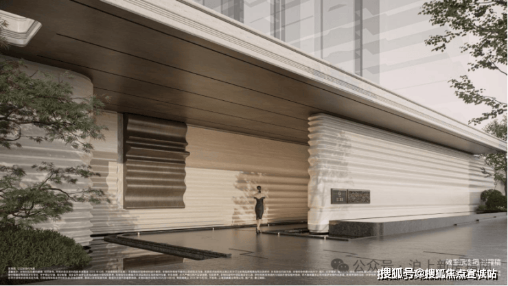 弧形仿石铝板勾勒立面层次,门厅、柱体、台面皆以柔弧过渡,不同材质成多倍投入以达最佳效果,打造温润高贵、典雅内敛的独有气质