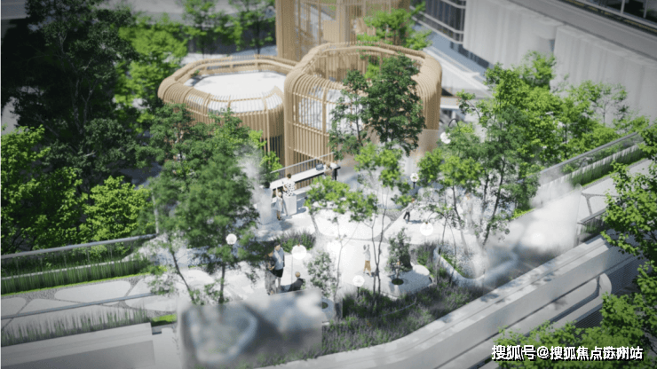 ▲中興傲舍浮悬花园与森林街区效果图,仅供学术交流,上海