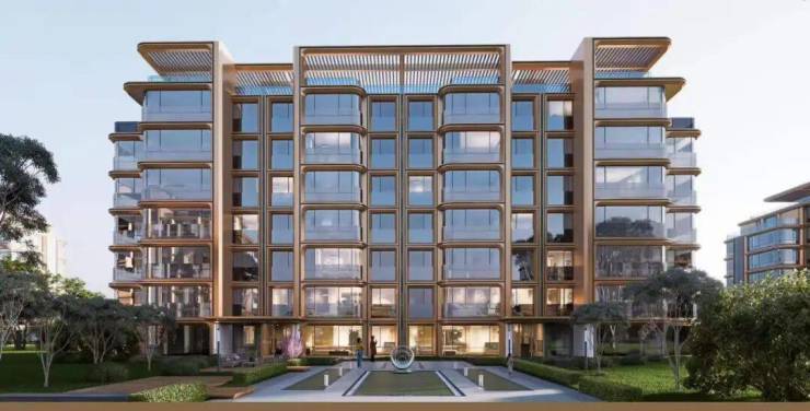项目立面设计堪称点睛之笔:以现代简约的森系造型为形,香槟金的流动曲线为韵,厚重石材的品格为骨,珐琅的历史印记为魂。