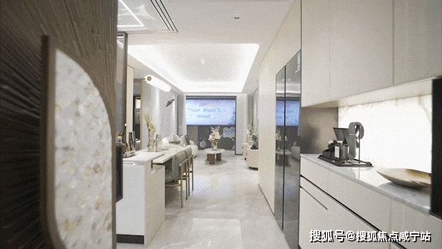 创新的“S墙”设计,在分户墙处增加“凹型空间”,嵌入式冰箱可以巧妙隐藏。“冰箱外移”为厨房操作台面和储物空间提供更多空间,优化了餐厨区域的动线。