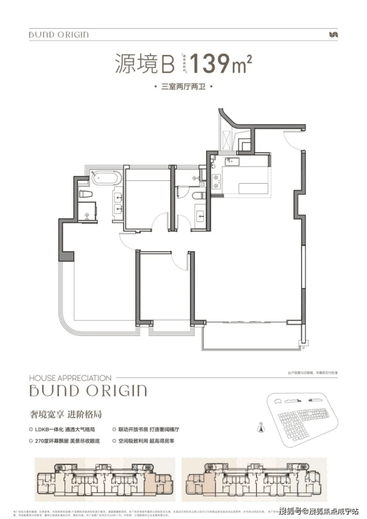 项目还提供139平方米三室两厅两卫、145平方米四室两厅两卫的户型选择!这些户型同样三面朝南,配备宽景阳台和主卧套房,空间更为宽敞,居住舒适度更高,适合更高层次的生活需求。特别是139平方米的边套户型,主卧设有270°转角飘窗,使用弧形玻璃,提升了成本和美感!