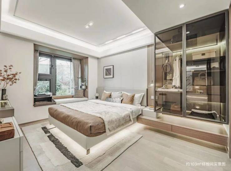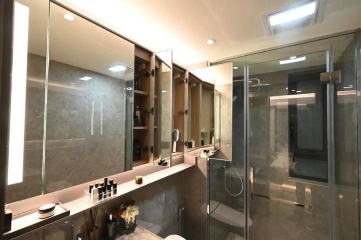 最后值得一提的是,项目还有很多个性化定制设计,包括防雾镜、美颜灯、电热毛巾架、岛台轨道插座(约93㎡户型)、预留美妆空间等。为业主的入住节省了大量的时间与金钱