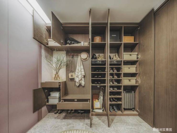 不仅能完全取代玄关的作用,放伞、挂衣、脱帽、换鞋、清洁等工作都能在进门前全部完成。