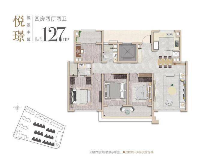 这个四房虽然建面只有127㎡,但因为是5层叠墅的高得房率,以及室内空间的高效利用,其功能和尺度感,给人的感觉十分惊艳。