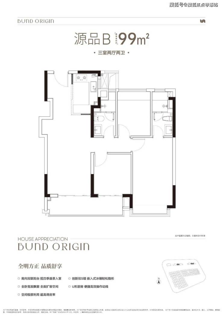 建面约99㎡3房2厅2卫▼