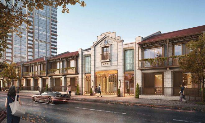 项目外立面融合历史肌理与现代美学,高层采用仿红砖陶板搭配古铜金属线条,还原北外滩地域建筑质感,大面积通透玻璃增强建筑轻盈感与采光性,顶部简约处理形成丰富形体变化,塑造沿河标杆形象。别墅复刻源福里、成厚里历史建筑肌理,严格保留文物建筑原有风貌,同时注入现代设计元素,古铜金属线条与天然石材的搭配,既延续历史文脉,又彰显精奢质感。整体外立面兼顾耐久性与美观性,实现建筑风格与周边历史风貌的协调统一,成为区域人文建筑典范。