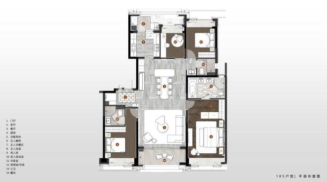 (图注:中粮北外滩壹号116 平层户型图)▲户型② 建面约建面约 185㎡大平层