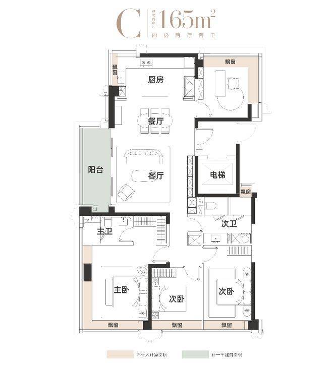 建面约165㎡则进阶诠释全景生活,坐拥270°无遮挡城市视野,更引入次卫四分离体系,通过淋浴、如厕、洗漱、家政的独立动线设计,从容应对早高峰,勾勒新生代家庭的日常温度。