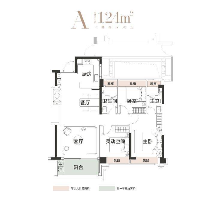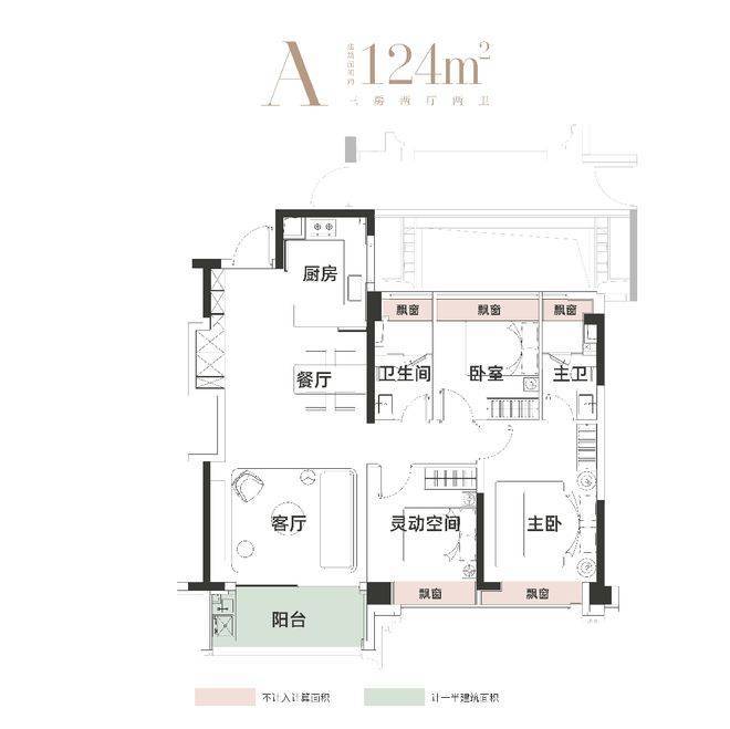 谁说主卧就该独享尊荣?在这里,我们重新定义“家”的公平。建面约124㎡三房两厅两卫,主卧与次卧共享阔尺人生。