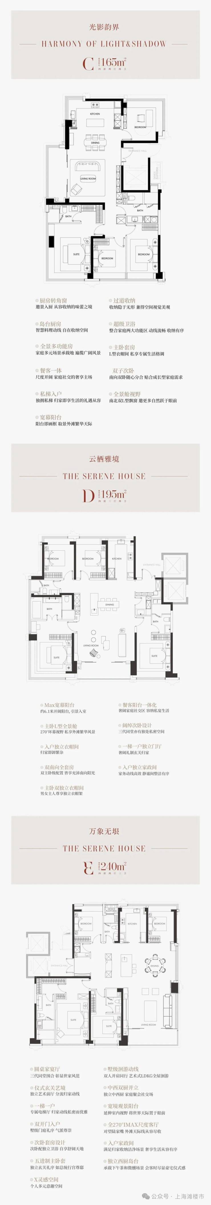 目前已开放124㎡三房、165㎡4房&240㎡奢华大尺度豪宅4房样板间,来看现场实拍: