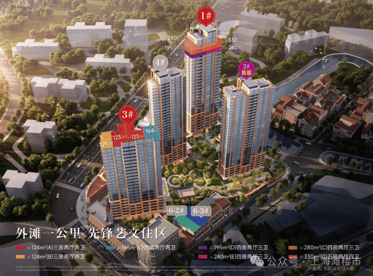 •户型:主力建筑面积121㎡三房及160㎡四房,得房率高达97%。