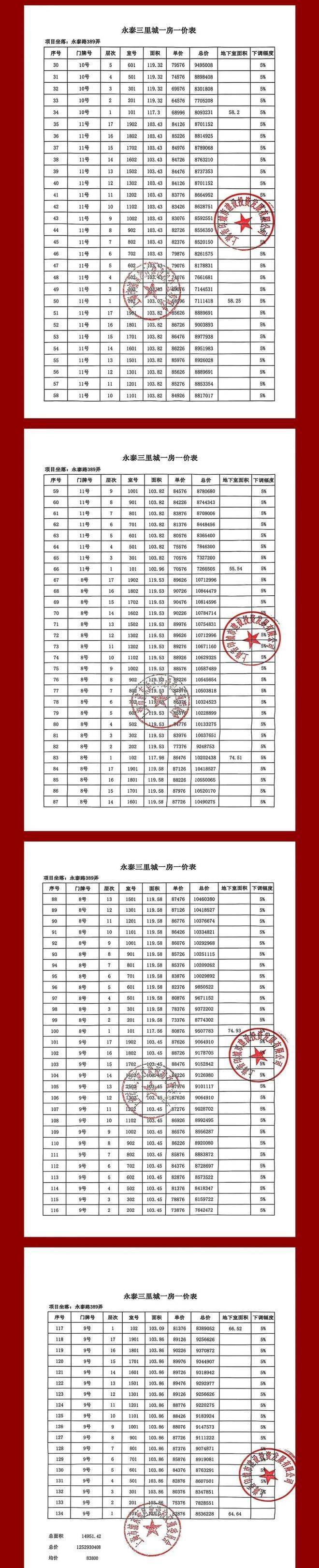 一房一价表: