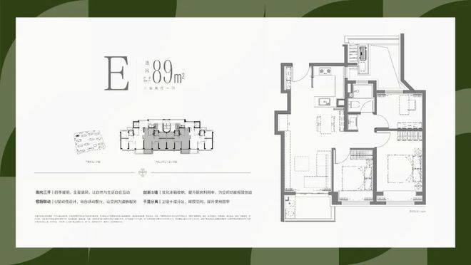 1、全部南向大面宽设计,保证最为出众的采光和视野需求;