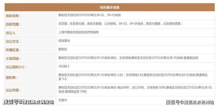2020年10月,仁恒+华发联合体以42.1亿的价格竞得静安区天目社区,C070102单元38-01、39-01地块,溢价率为1.25%,成交楼面价52833.79元/㎡!