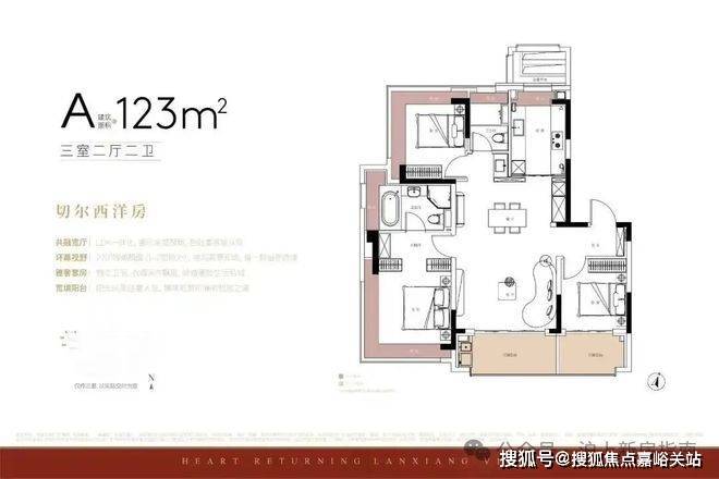 123㎡ 三房两厅两卫(洋房,总价 731-850 万)
