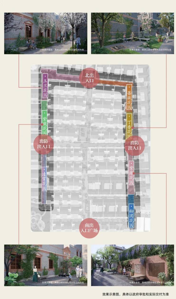 在土地肌理的延续再造中,充分保留了地块内原有8个里弄间“行列式”的肌理布局,原始主、支弄的形态和组团特征,根据现代人的生活需求,优化再组为6个新组团,传承海派名园的营造手法,提取洋房的场景,并植入社区景观而打造了雅集六境、风华四艺、画境八园等多维主题,围合一座容积率仅为1.1的繁花巷弄里,内环花园秘境。