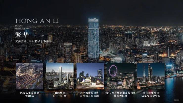 弘安里的北侧的静安里,上海静安里,汲取新天地、张园等城市节点级风貌商业精髓,精心规划沿武进路历史风貌商业街区,展示体验在地文化,打造高端零售、高档餐饮、文化展览等丰富业态的商业格局,再融入弘安里和静安里的成片风貌区,未来这里将成为上海的新里天地!东侧的18街坊,就是崇邦集团商办综合体。总建筑面积达29万㎡,其中包括约11万㎡的新建商业设施,10万㎡的超高层办公楼,目前已投入使用。西侧则是安康苑和龙盛湾上打造的超高层住宅和高能级商业。