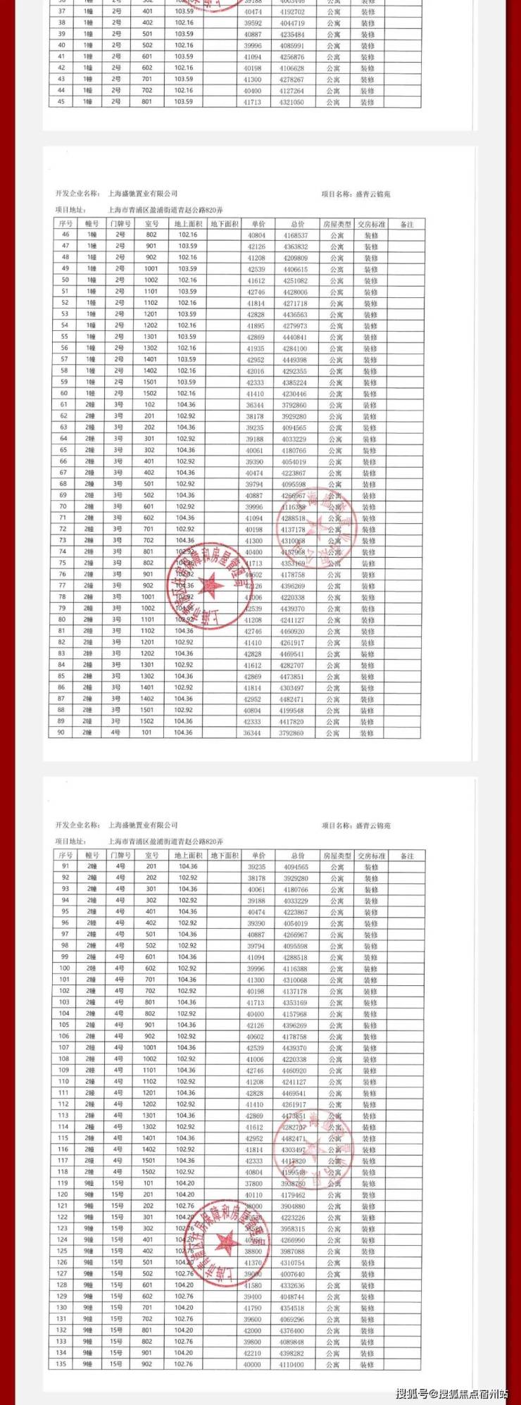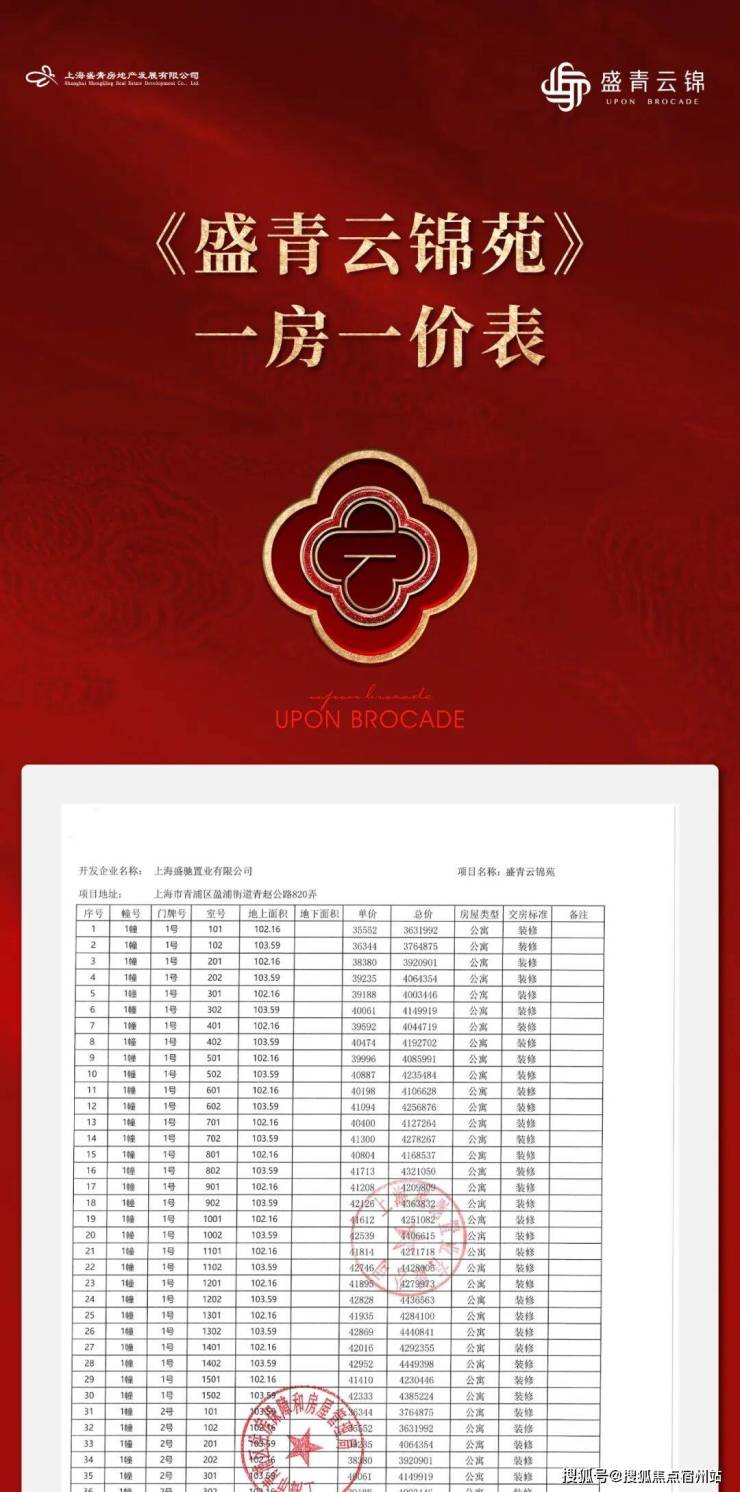 最新消息,一房一价表发布!青浦新城「盛青云锦」建面约103-145㎡三房四房,均价4.45万/㎡!
