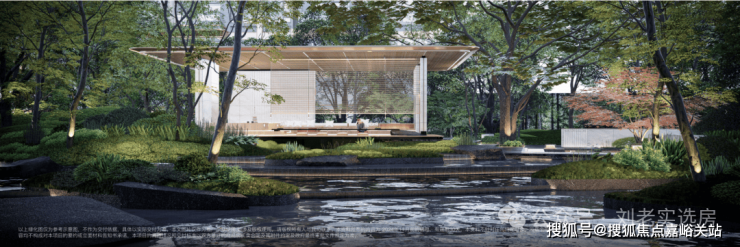 下沉式中庭花园,以⽔境、浮岛、密林,构建都市中的谧境