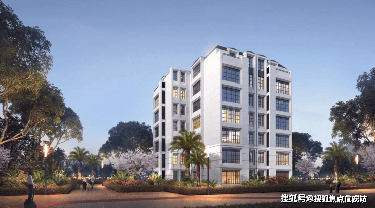 建筑风格:为现代法式风格,外立面采用石材与铝板,搭配法式铁艺大面积落地窗,外观精致美观。