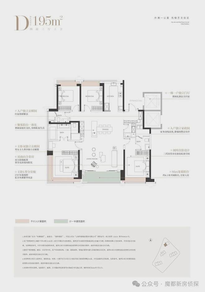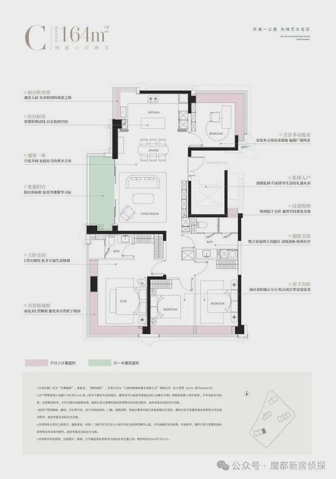 特别是笔者自己亲身看过两个开放样板间后,建面约164㎡的四房几乎可以说从户型设计、实用细节、装标配置、体感尺度全部拉满,堪称内环户型中真正的“六边形战士”。
