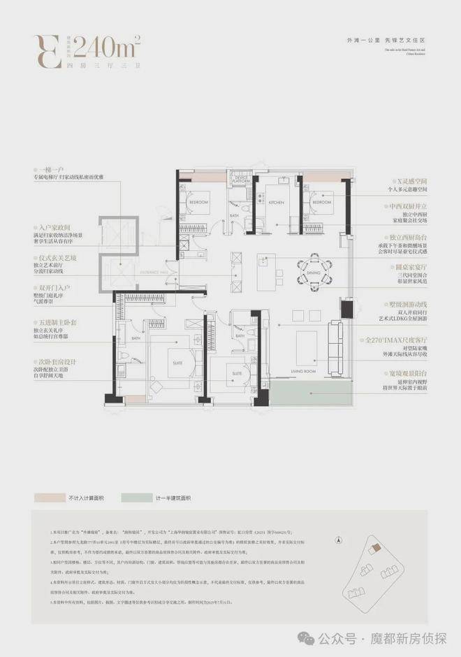 空间、尺度感频繁被提及,顶豪的起步面积习惯性设置为200㎡+,部分改善房源的四房门槛也提到了180㎡+。
