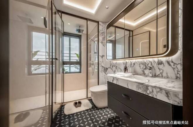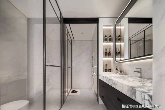 公卫打造独特的四分离系统, 实现独立洗漱台、卫生间、淋浴间、洗衣区互不打扰,将酒店化体验引入住宅。