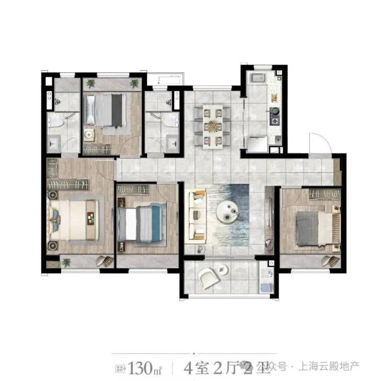 户型:130㎡大四房,装下三代同堂的幸福