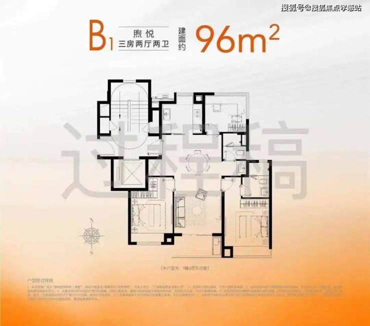 在售96平户型图如下: