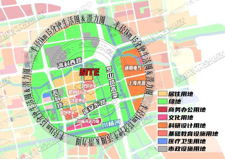 商业方面:项目本身享有规划中的滨水商业街区(南侧川杨河沿岸)。半径5km范围内,覆盖浦东山姆会员店、宜家、长泰广场、科学之门、复地活力城、巴黎春天等成熟商圈,10km半径更可无缝衔接国金、世纪汇、世博源、前滩太古里等顶级商业地标。