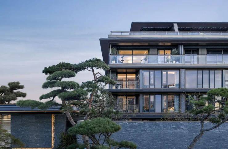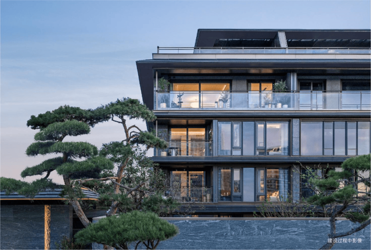在建筑上,绿城·逸庐沿用庐系“现代形,东方意”的内核。小高层以金色线条勾勒挺拔轮廓,大面玻璃搭配轻盈檐角,既有东方风骨,又具摩登质感;叠墅区则强调“东方屋檐下的院落感”,通透立面搭配简约线条,让阳光与清风自由穿梭,勾勒出“飘逸东方之美”。