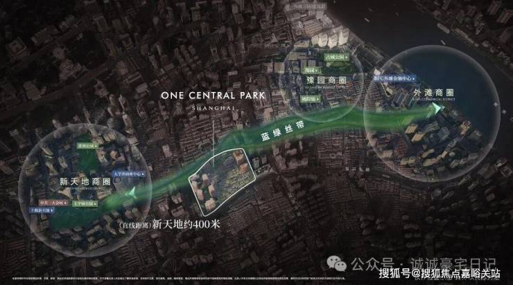距离新天地直线距离约400米,作为蓝绿丝带规划上的关键节点,随着大新天地东进南拓战略逐步实施,通过水景、绿地和公共空间,串联新天地、豫园、外滩三大世界级商业版图。